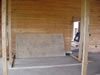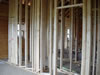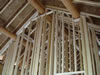 Another Friday, just like any other. It's been raining all week so we're getting to see how the current, as yet unfinished, grade behaves with lots of water. Also, the tent trailer is still up! As a result of the rain, we're still waiting on the Master B/R bay window. Fortunately, there's lots of work to do inside. The framing of interior walls is well underway in the guest wing. The stairwell has been widened to nearly four feet - much better! That's created a couple of wrinkles, given that the washer is nearly thirty-six inches deep. |
