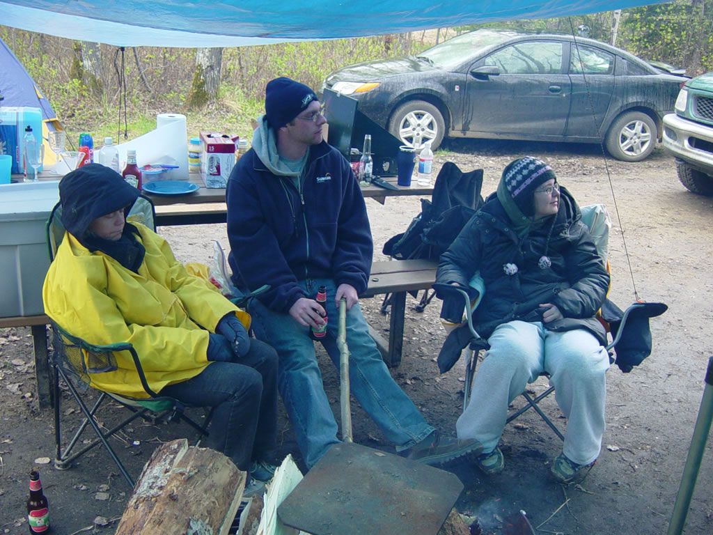 Around the girl's fire: Karen, Mel, Scott.